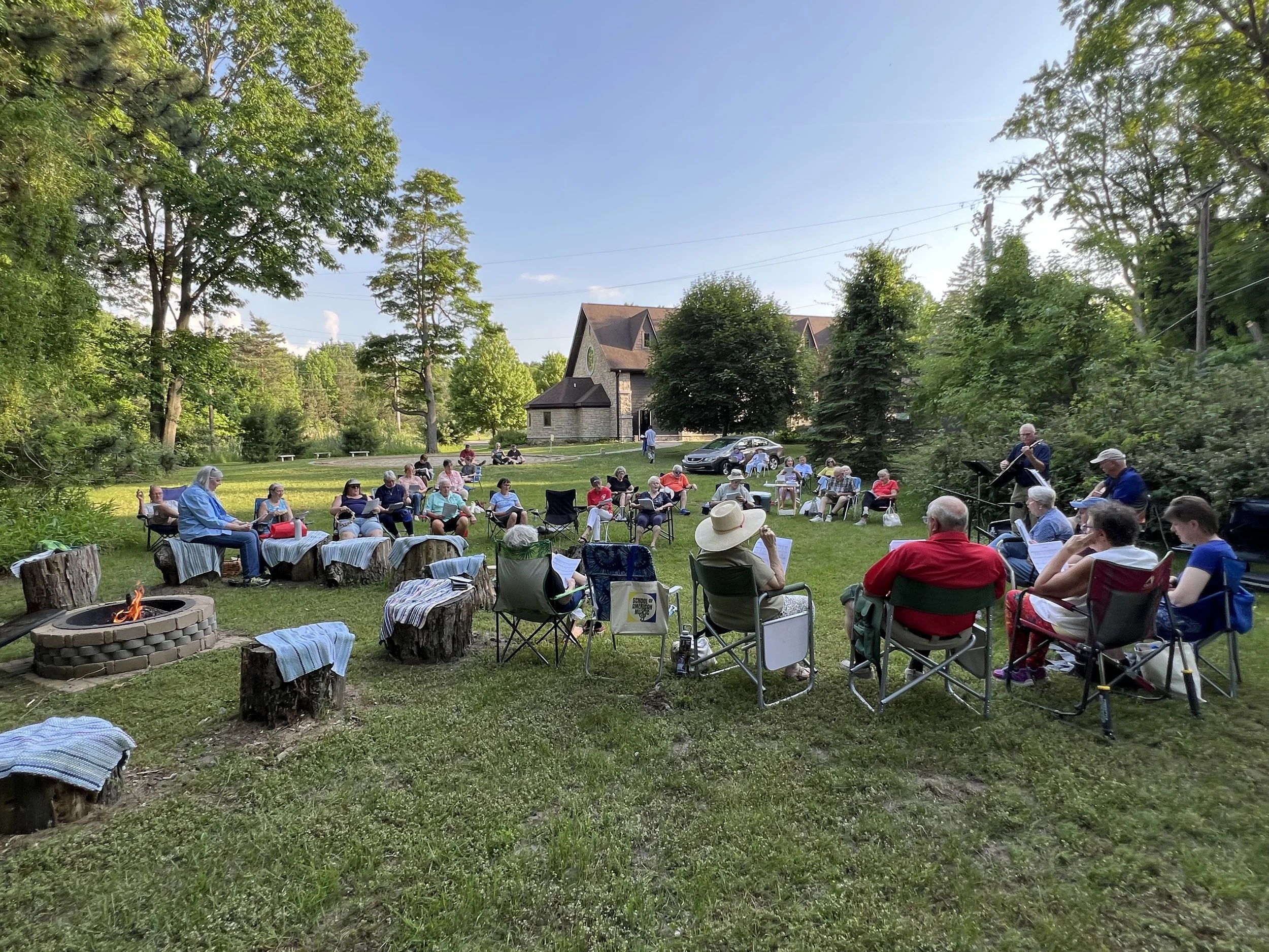 The Harbor Country Singers will lead a Campfire Sing-Along at the outdoor campfire circle at Episcopal Church of the Mediator. Songs "Home on the Range", "I've Been Working on the Railroad", "Oh Shenandoah", "Red River Valley", and "This Land is Your Land" will be included, along with many others. Song books with music and lyrics will be provided. Logs will be available for seating or bring your own chair or blanket. The event will be moved indoors in case of rain.